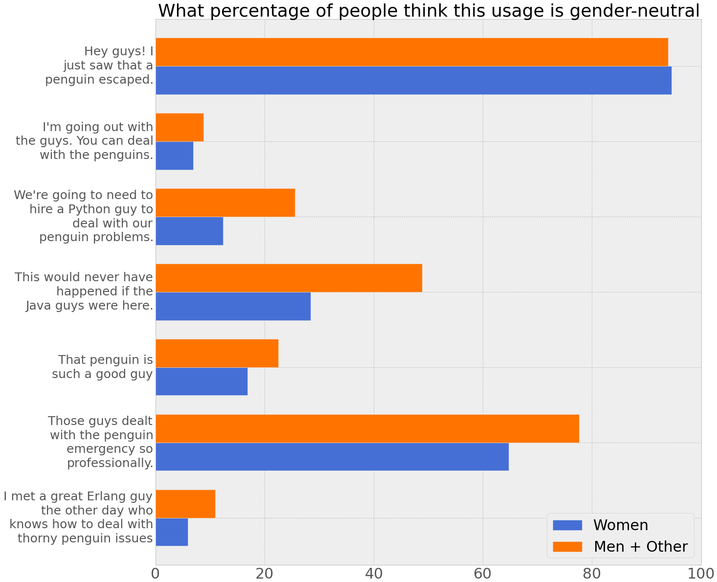- The framing of the survey is pretty biased – I said things like “someone is trying to convince me that ‘guys’ is a gender neutral term” in my tweets about the survey.